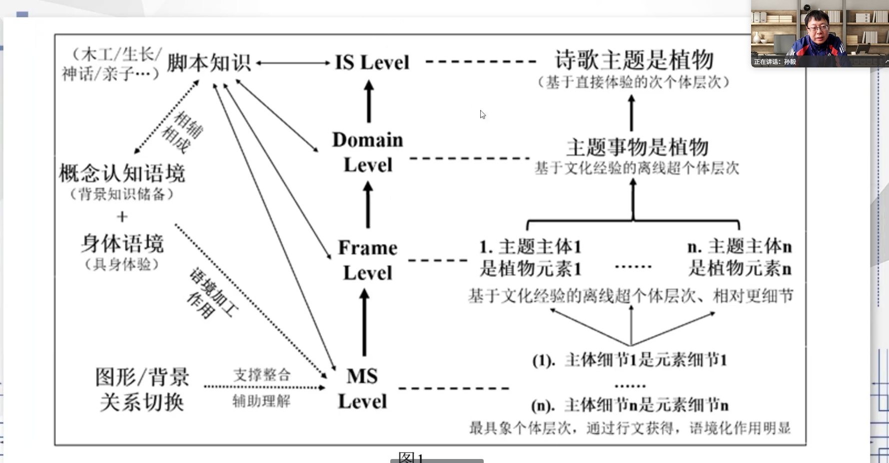 讲座伊始,孙教授系统阐释了ECMT理论的多层级框架,指出隐喻生成是语境信息与离线概念系统的整合过程,语境具有关键启动效应。随后,他结合认知诗学范式,分析庞德诗歌植物意象通过概念认知语境与身体语境激活读者脚本知识,传递“开拓文学、告白爱人、礼赞生命”三大主题,通过图形背景转换与脚本激活构建自下而上的隐喻架构,并以《盟约》《女孩》《地铁站》为例,具象解读植物意象的隐喻内涵。孙教授强调,植物意象的理解依赖读者对植物特征的共有感知、文化经验及视觉、触觉等身体语境的情感共鸣,希腊神话脚本的激活则串联了古典文化与现代诗歌的意蕴。他还向青年学者分享研究与投稿建议:需紧跟学科理论前沿,注重理论与文本结合;投稿应瞄准期刊特色栏目,避免海投以提升命中率。
