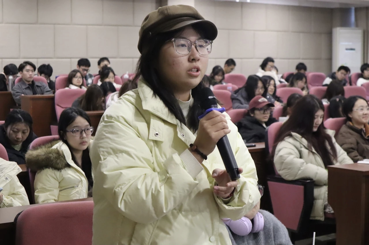 在互动交流环节,同学们围绕跨境电商职业方向、小语种市场机遇、跨文化内容创作等话题积极提问。邓亚辉结合行业趋势与人才需求给予了细致解答,现场交流气氛热烈。