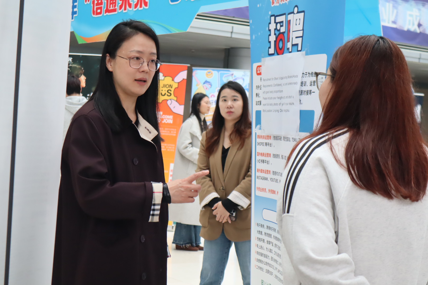 为深入贯彻党中央、国务院关于高校毕业生就业工作的决策部署,精准服务促就业,4月14日下午,由外国语学院主办的“语通未来”专场招聘会在文化活动中心一楼火热进行。本次招聘会精准聚焦春招黄金期,搭建高质量、多层次、精准化的校企对接平台,助力毕业生“语通世界、职引未来”。
