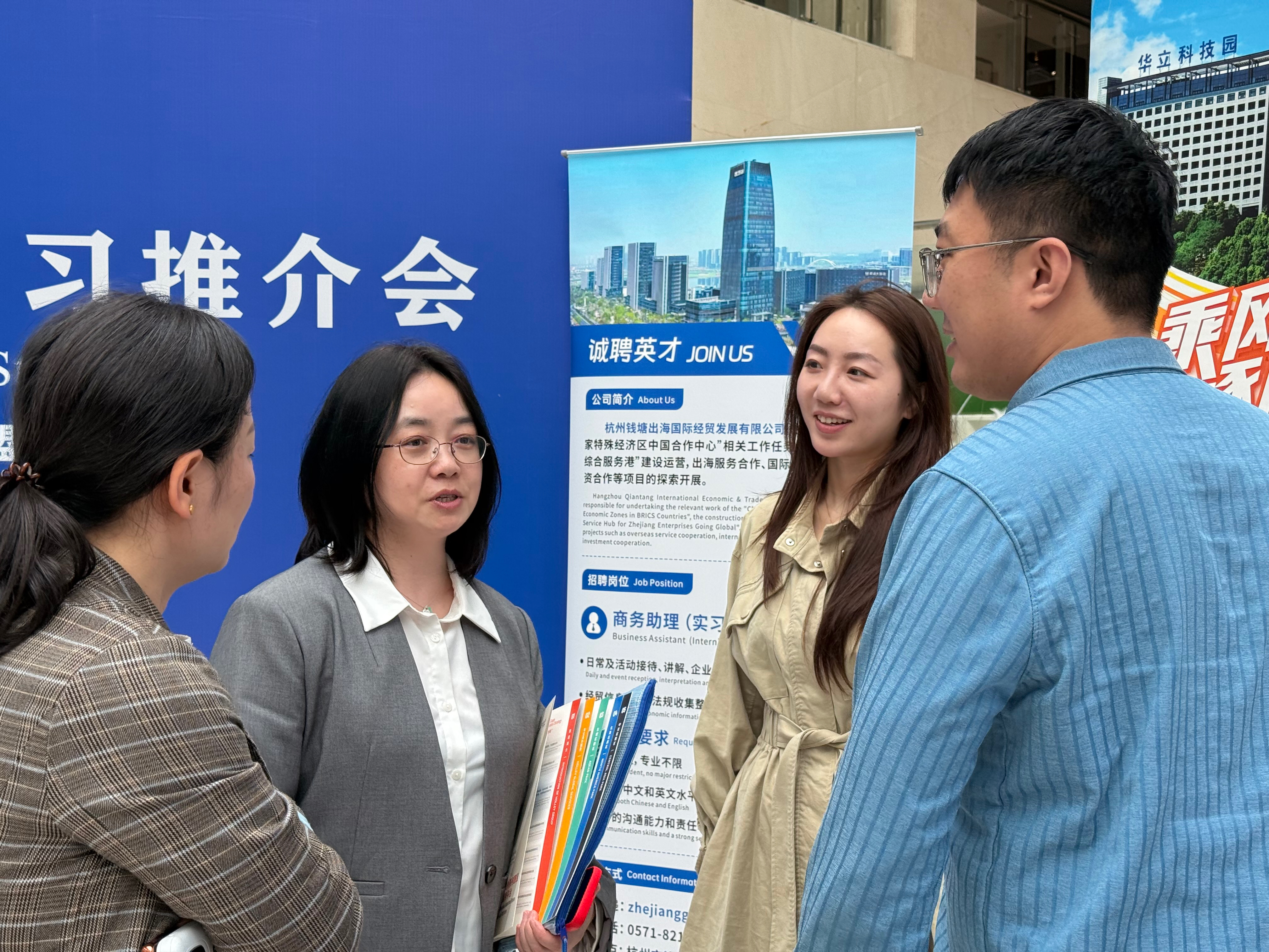 本次招聘会汇聚浙江横店进出口有限公司、浙江亚太机电股份有限公司等50多家优质企业,阵容强大、供给多元。招聘岗位精准覆盖外语类专业核心能力及“外语+”复合型人才方向,共带来外贸销售、跨境电商运营、培训教师、海外市场拓展、商务翻译、新媒体运营等200余种就业与实习岗位,为毕业生提供了丰富多元的求职选择。