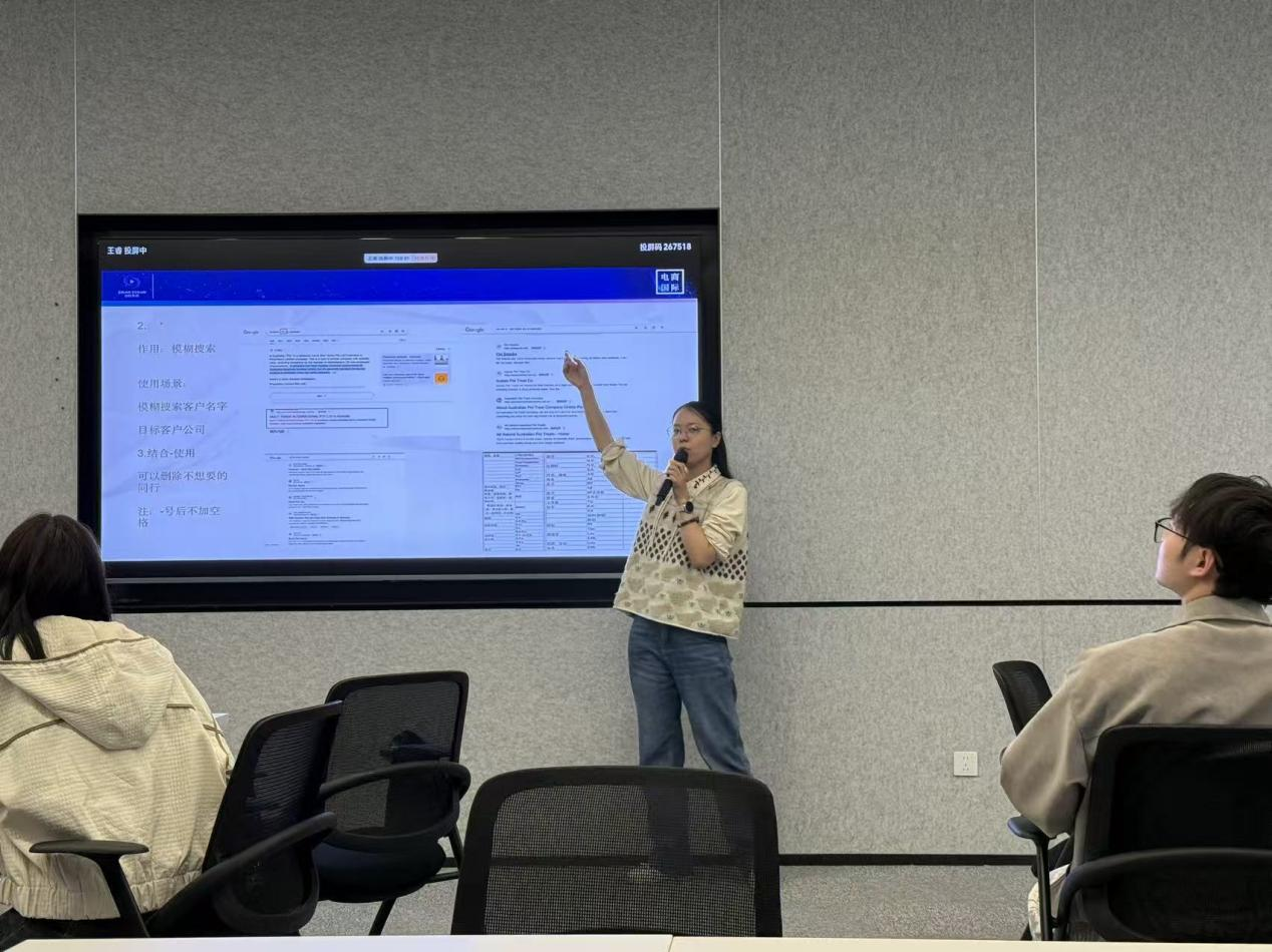 王睿总监聚焦组织建设与客户开发两大板块,系统讲解了从0到1搭建外贸业务体系的方法路径,深入介绍了跨境电商常见渠道、订单从需求到成交的完整流程,以及谷歌客户开发技巧等实操内容。互动环节中,王睿总监根据学员个人意愿和兴趣点,将14名学员分成四组——运动娱乐组、印花服饰组、机器人组、医疗器械组,每组由一人担任组长负责组织协调。各小组初步建立团队架构,明确成员岗位职责,分别迎接不同领域产品的销售挑战,在实战中检验团队协作与业务能力。