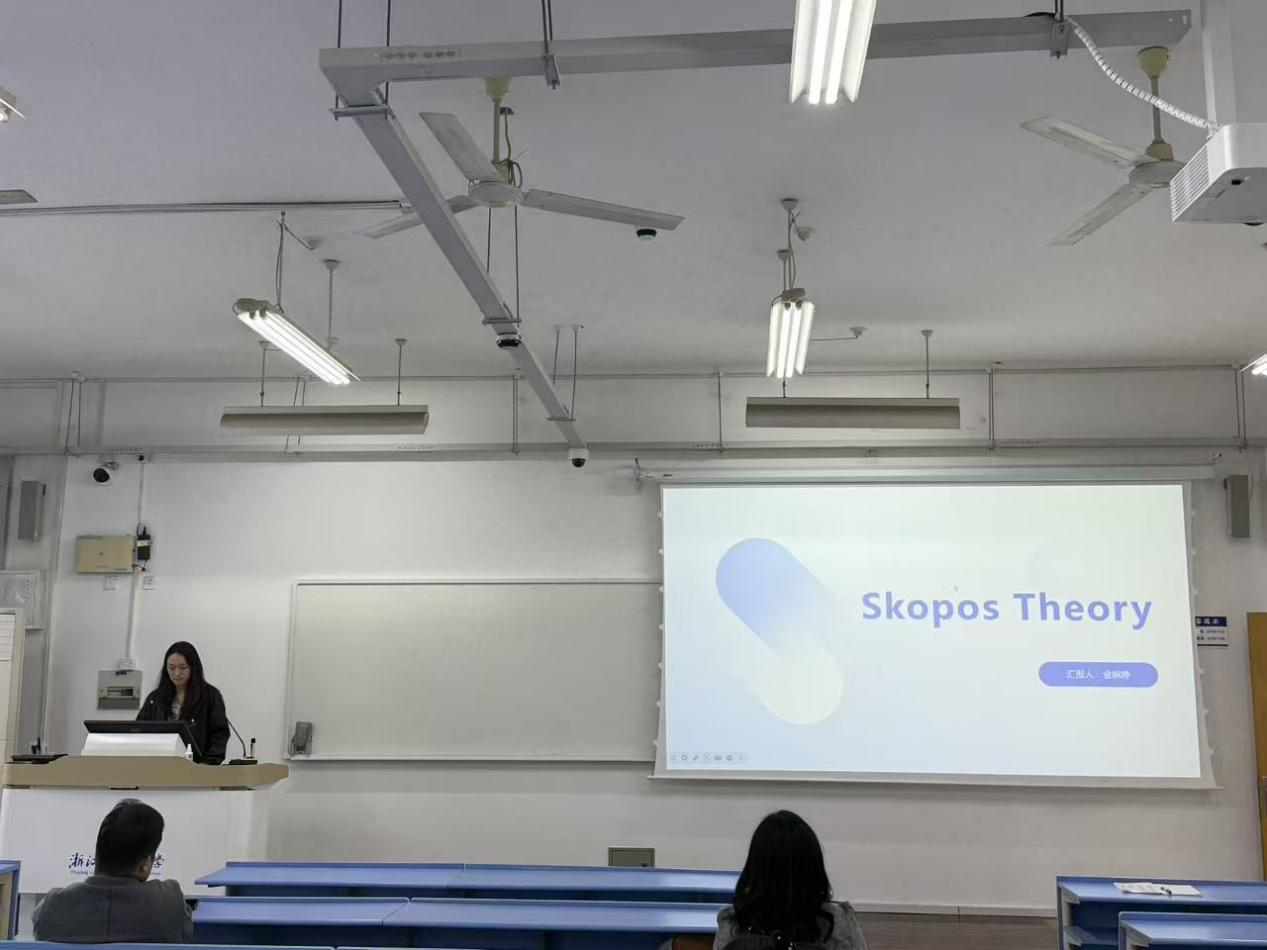 金婉婷作了标题“Skopos theory”的读书报告,以“目的论”为主题,详细介绍了目的论的代表人物和其对于翻译发展的重要意义,其次介绍了目的论的提出和具体发展,特别阐述了目的论的定义及其三原则,通过将其应用在翻译实践中进一步生动体现了该理论的实践性,最后以总结目的论的意义收尾。