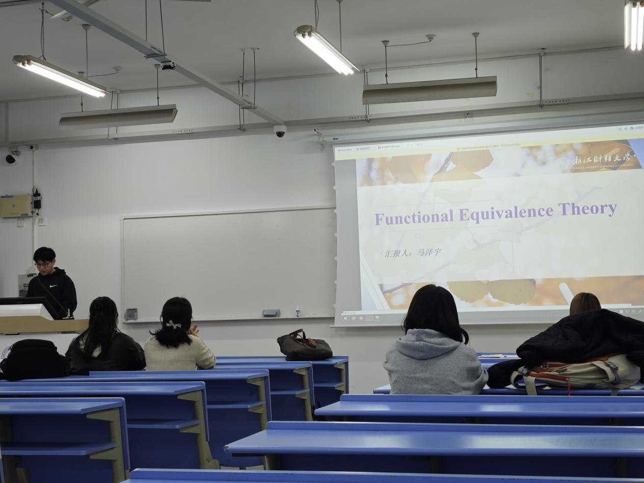 马泽宇作了标题为"Functional Equivalence Theory"的读书报告,该读书报告会以 “功能对等理论” 为主题,详细介绍了奈达提出的功能对等理论核心观点,探讨了其在英汉翻译中的实际运用与挑战。