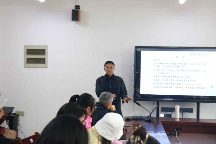 2025年12月30日下午,浙江财经大学外国语学院“学涯外语讲坛”第八十五讲成功举办。此次讲座由曹道根教授主持,特别邀请刘晓峰教授作为主讲人,围绕“无本译写基础理论与应用拓展研究”进行了分享。