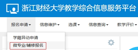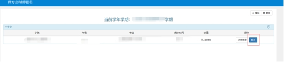 登录教务系统--“报名申请”-“微专业/辅修报名”,选择意向的微专业项目“报名”-“同意”即可。